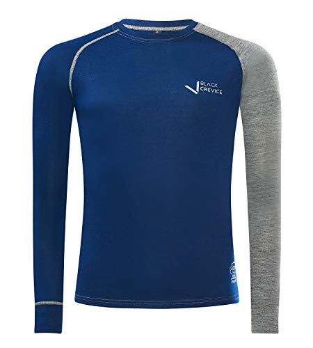 Black Crevice T-Shirt à Manches Longues pour Femme en Laine mérinos, Bleu/Gris, M