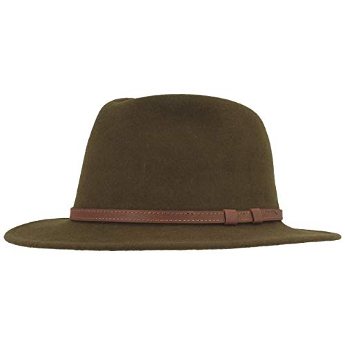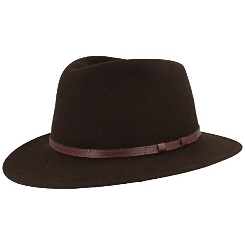 Chapeau d'extérieur en feutre | Chapeau de trekking | Chapeau en laine 100 % laine – Imperméable & pliable – avec garniture en cuir – Pour homme et femme - Marron - Medium