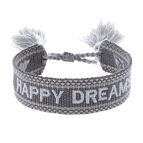 Engelsrufer Bracelet pour femme en polyester et coton gris et blanc avec broderie Happy Dreams - Fermeture à cordon - Taille réglable, 15,5-25 cm, Polyester Laine, Pas de gemme