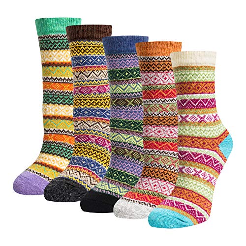 Justay 5paires Chaussettes Femme en Laine Mérinos Chaude Douce pour Hiver, Chaussette Épaisse Unisexe Multicolore