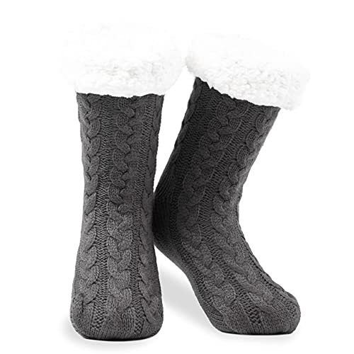 Chaussettes chaussons doux pour femme et homme - Chaussons tricotés en laine sherpa - Antidérapants - Taille 36-42 - Gris - 37-42