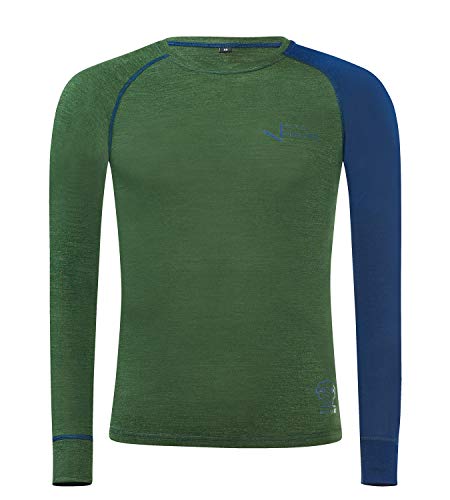 Black Crevice T-Shirt à Manches Longues pour Femme en Laine mérinos, Vert/Bleu, XL