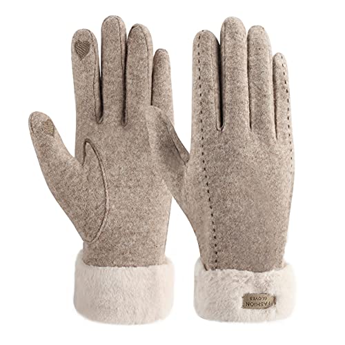 ZASFOU Gants d'hiver en laine pour femme avec doublure en polaire thermique, épais et chaud,Kaki,M