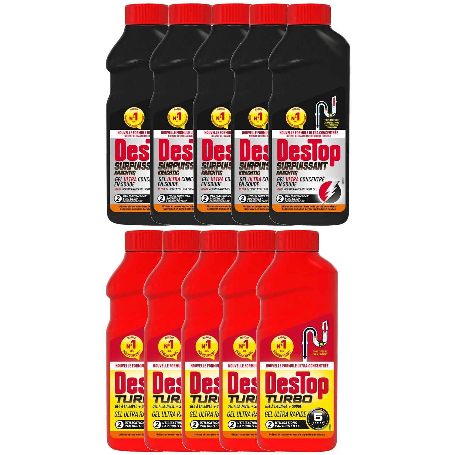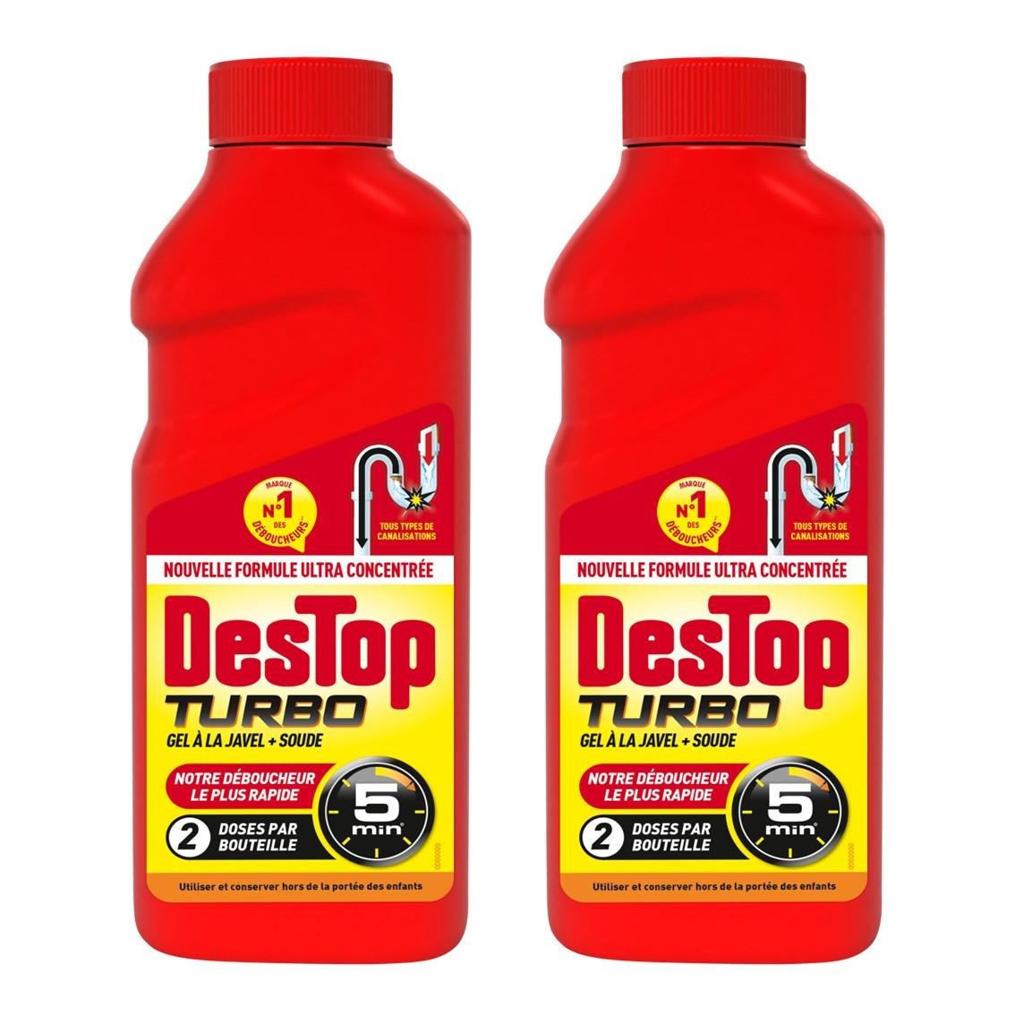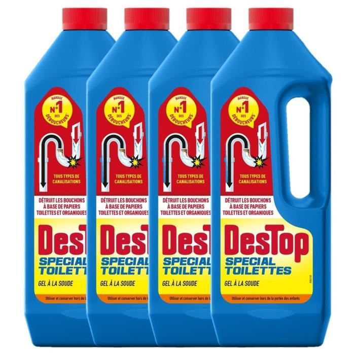 Déboucheur spécial toilettes - DESTOP - Lot de 4 - Gel épais - Efficace sur bouchons organiques - 1L