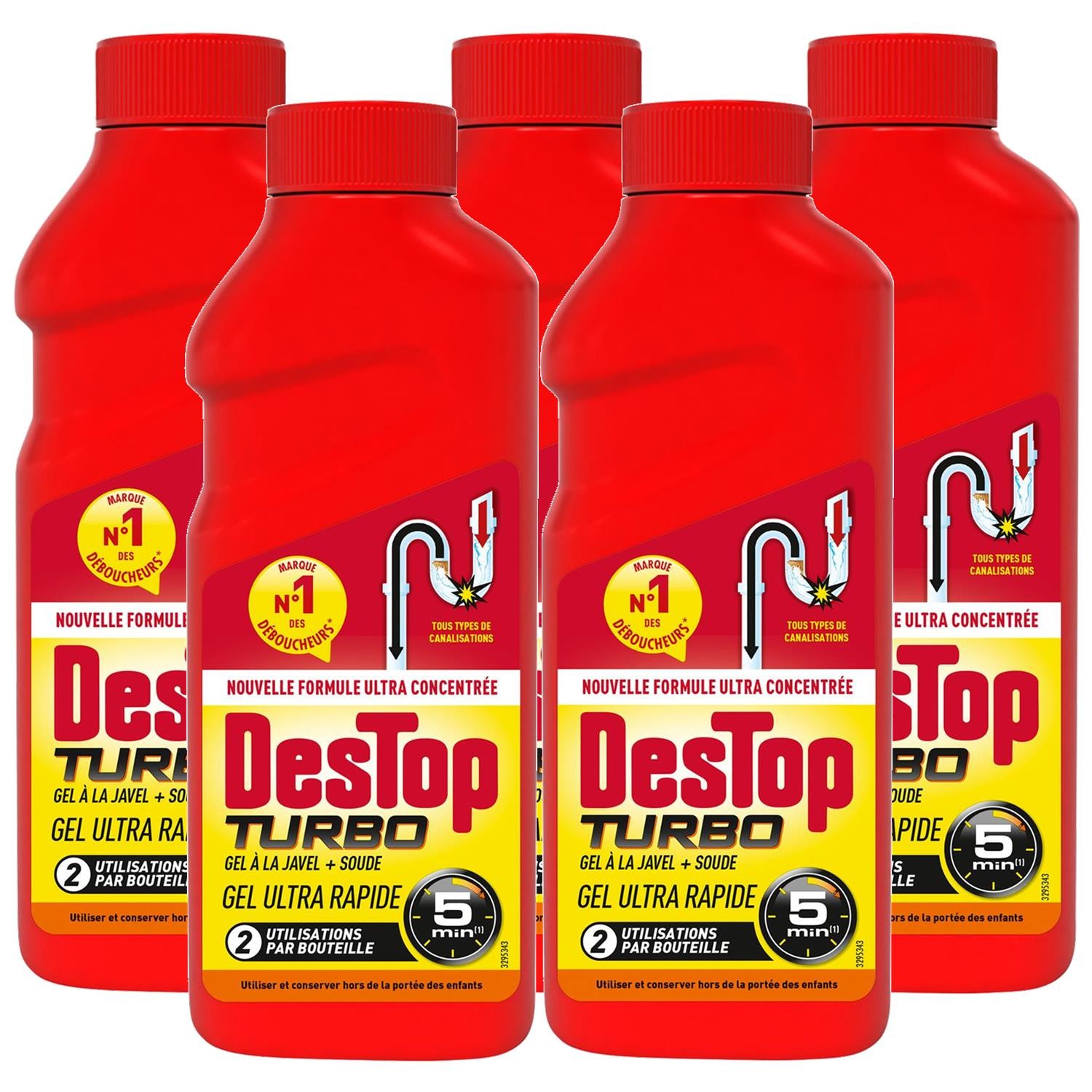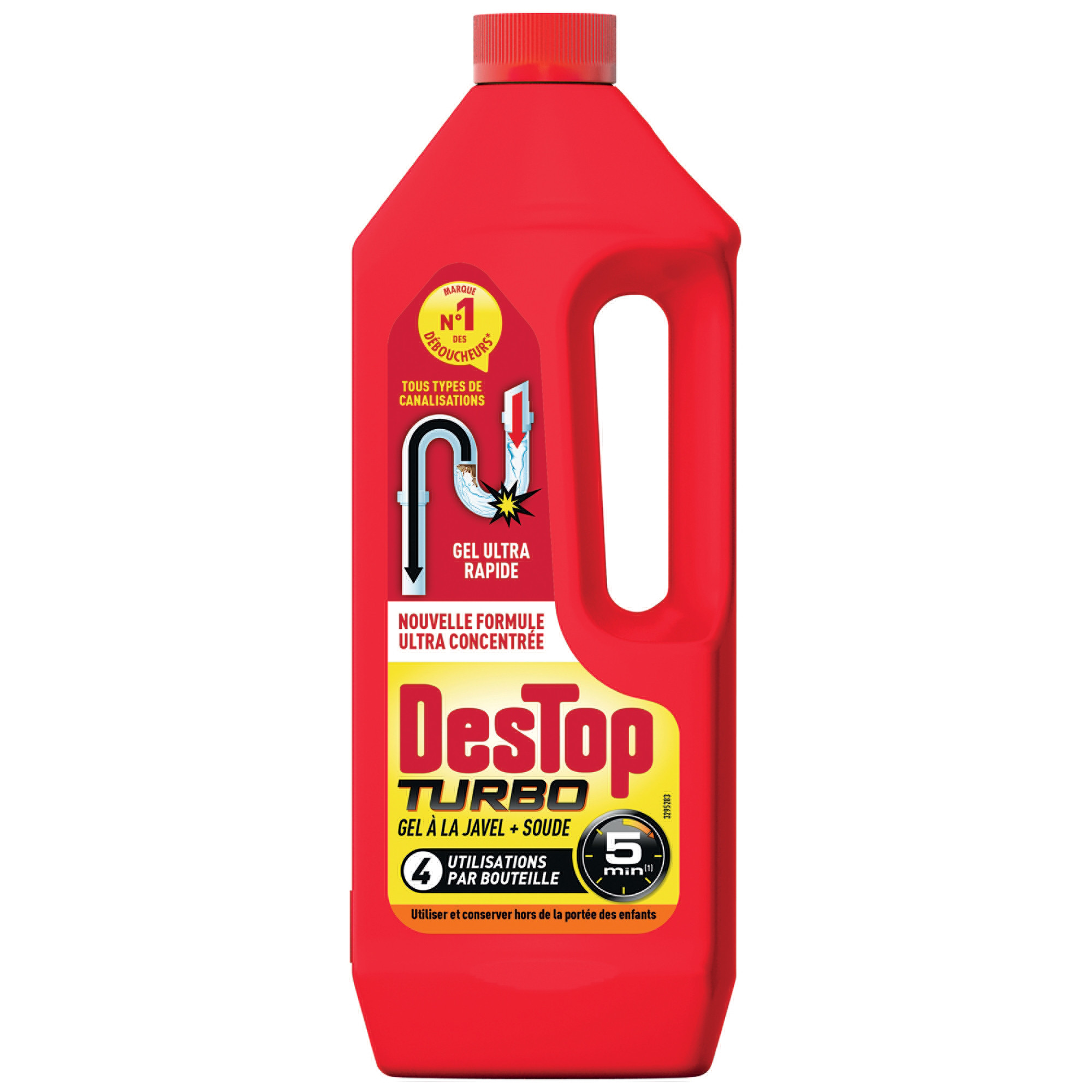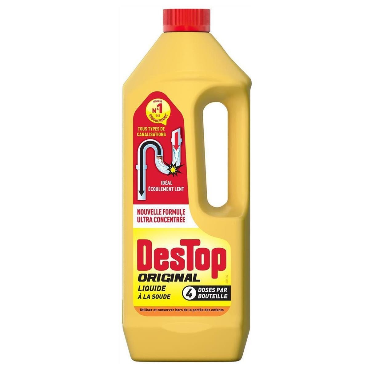 Déboucheur spécial toilettes - DESTOP - Lot de 4 - Gel épais - Efficace sur bouchons organiques - 1L