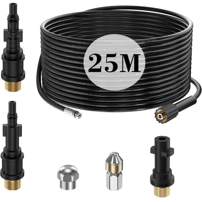 25M Tuyau Déboucheur Canalisation Nettoyage Haute Pression pour Kärcher K2 K3 K4 K5 K6 K7 HD HDS, 180Bar Kit Furet Professional avec Buse Rigides +