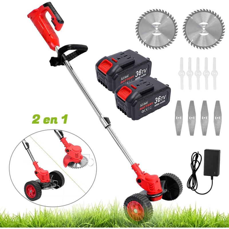 Tondeuse à gazon électrique sans fil 2 en 1, Coupe-bordures/Débroussailleuse à roue, Outil de jardin pour tondre la pelouse, écran LCD, 1 batterie
