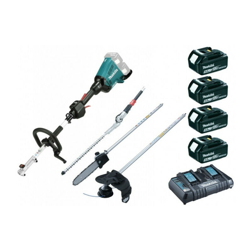Outil Multifonctions 2x18V DUX60 + Taille haies + Perche élagueuse + Débroussailleuse + 4 batt 5Ah MAKITA