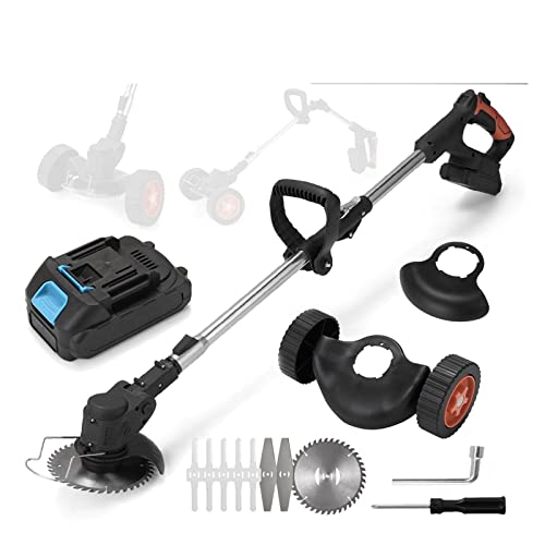 Coupe-Herbe électrique sans Fil 21 V avec poignée en D, débroussailleuse à 2 Roues, Coupe-Bordures et débroussailleuse 3 en 1 sans Fil, Coupe-Bordures Rechargeable avec 2 Batteries
