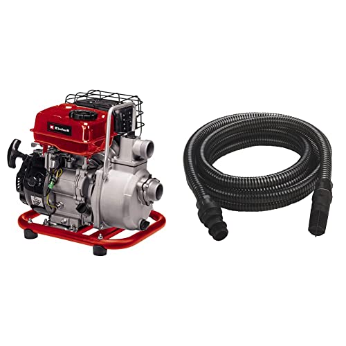 Einhell Pompe d’évacuation thermique GC-PW 16 (1.6 kW, moteur 4 temps, embout de remplissage) & Accessoire Kit tuyau d'aspiration noir 7 mètres avec embouts en PVC - température max. : 35°