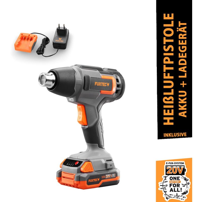 Fuxtec - Decapeur thermique batterie FX-E1HLP20 - 20V 550 degrés c, débit 200L/min - Set batterie et chargeur 2,4A