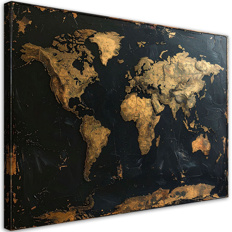 MuchoWow© Impression sur Toile Photo Peinture 120x80 cm Tableau Decoration Murale Chambre Salon Maison Deco Cuisine Carte du Monde - Or - Dégoulinant - Noir