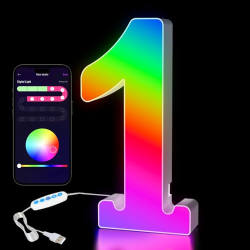 Kimimara Chiffre LED Lumineux 0–9 – Numéro Lumineux pour Anniversaire, Mariage, Déco Chambre Ado ou Enfant, Lettre Décorative Lumineuse pour Fête, Noël, Soirée - Numéro 1
