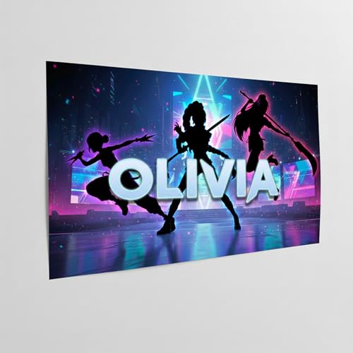 Poster personnalisé prénom kpop affiche k-pop murale musique coréenne déco chambre enfant ado idol style hunter néon color cadeau personnalisé anniversaire Noël affiche murale kpop demon personnalisée