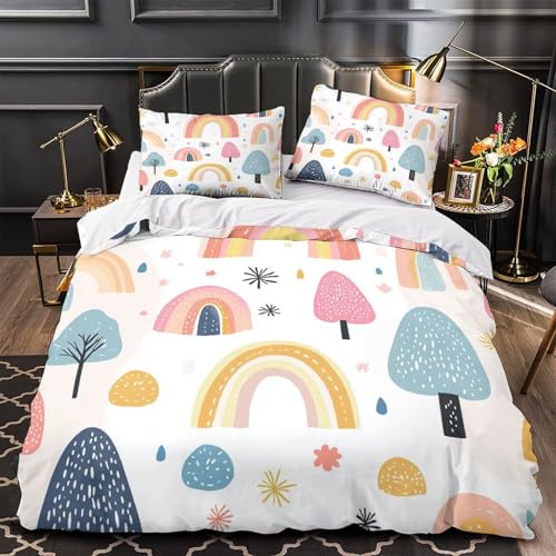 YVASPQRTW Motifs Arc-en-Ciel 3D Imprimé Housse de Couette 3 pièces Microfibre Anti-Tache Fantaisie enfantine Drap de Couette 2 taies Lavable Machine déco Chambre ado King(220x240cm)