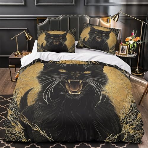 YVASPQRTW Chat Noir 3D Imprimé Drap de Couette Microfibre éclair dissimulé Illustration Fantastique Gothique Housse de Couette 2 taies inaltérable déco Chambre ado Double(200x200cm)