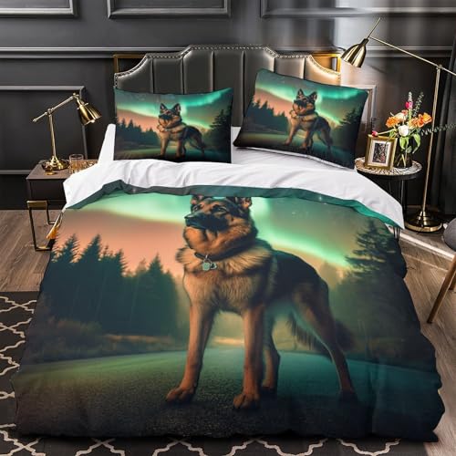 YVASPQRTW Berger Allemand 3D Imprimé Drap de Couette Microfibre léger scène de forêt Nocturne Housse de Couette 2 taies Anti-Tache déco Chambre ado King(220x240cm)