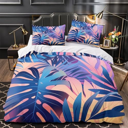 Motif de Feuilles Tropicales 3D Imprimé Housse de Couette 3 pièces Microfibre hypoallergénique Art Mural botanique Drap de Couette 2 taies éclair déco Chambre ado Single (135x200cm)