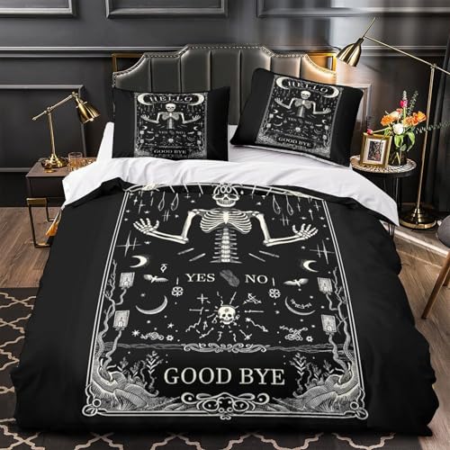 YVASPQRTW Squelette 3D Imprimé Drap de Couette 3 pièces Microfibre Entretien Facile Design Gothique Occulte Housse de Couette 2 taies éclair caché déco Chambre ado King(220x240cm)