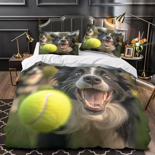YVASPQRTW Chien Joueur 3D Imprimé Drap de Couette Microfibre léger activités de Plein air avec Les Animaux de Compagnie Housse de Couette 2 taies Anti-Tache déco Chambre ado Single (135x200cm)