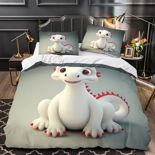 YVASPQRTW Jouet Dragon Mignon 3D Imprimé Drap de Couette Microfibre inaltérable Dessin animé Housse de Couette 2 taies léger déco Chambre ado King(220x240cm)