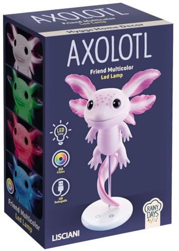 Lisciani – RAINY DAYS – Lampe LED Axolotl Multicolore Dès 12 Ans – Veilleuse RGB Intensité Réglable – Rechargeable USB Type C – Éclairage Sans Fil – Déco Chambre Ado – Favorise Autonomie