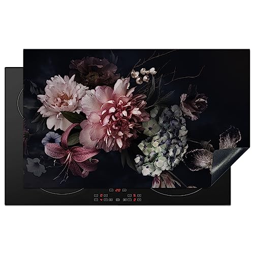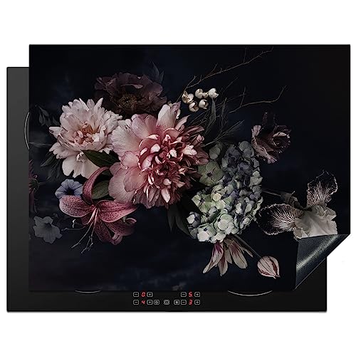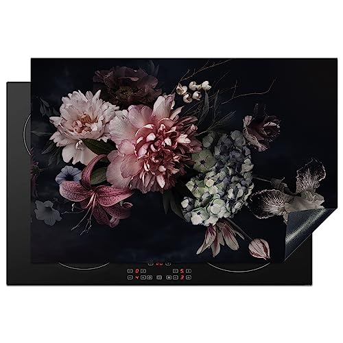 KitchenYeah© Protection Plaque Induction 77x59 cm Protege Deco Cuisine Cache Protège De Cuisson Accessoires Fleurs - Vintage - Pastel - Rose - Blanc