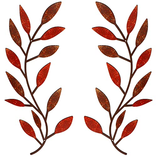 Lot de 2 décorations murales en forme de feuille d'arbre en métal - Décoration murale en fer forgé - Décoration murale au-dessus du lit, du salon, de l'extérieur - Couleur vive