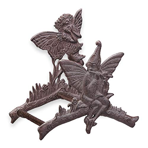 Relaxdays Porte Tuyau d’arrosage, décoration Jardin, en Fer forgé, Motif Elfes, féerique, Fixation Murale, Marron foncé