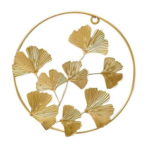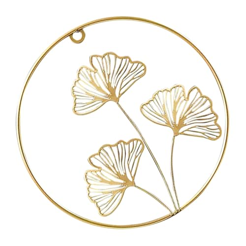 POPETPOP Décoration Murale Salon en Fer Forgé, Ornement Suspendu Feuille de Ginkgo Doré Creux, Petite Taille Ronde, Décoration Intérieure Rustique, Présent Déco Noël pour Maison et Balcon