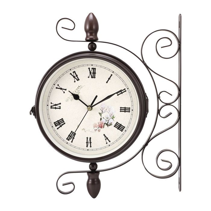 Horloge murale double face : étanche rétro fer forgé quartz silencieux déco int/ext (gare jardin)
