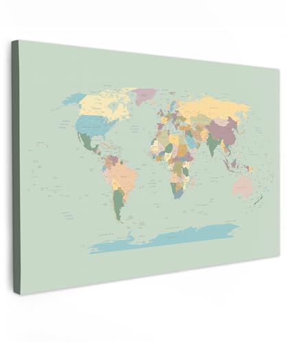 MuchoWow© Impressions sur Toile 90x60 cm Deco Tableau Murale Decoration Salon Peinture Tableaux Chambre Toiles Maison Carte du Monde - Réaliste - Carte