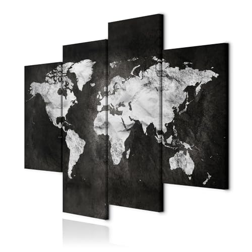 MuchoWow© Impressions sur Toile 80x60 cm Deco Tableau Murale Decoration Salon Peinture Tableaux Chambre Toiles Maison Carte du Monde - Beige - Noir