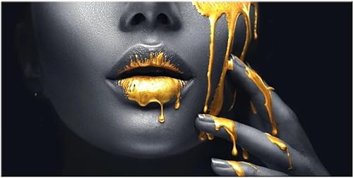 YLHKME Tableau Visage de Femme avec Liquide Doré Moderne,Affiche Toile Tableau Decoration Murale Salon,pour Chambre Cuisine Bureau, Deco Maison, sans Cadre (Frameless,50X100CM)