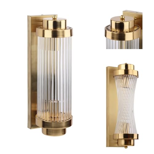 zhxinashu Applique Murale Intérieure Doré à Tube de Verre, Lampes Murales en Verre, Lampe Murale Art Deco E14, Applique Vintage pour le Salon, la Chambre et le Couloir(Doré)