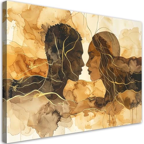 Feeby - Tableaux - Deco Tableau Murale - Couple abstrait doré - 120x80 1partie - Pour la Chambre et le Salon - Pour Chaque Pièce de Votre Appartement - Toiles pour le bureau