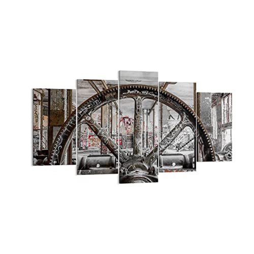 Deco Décoration Salon Machine Industrielle Graffiti Moderne Impression sur Toile 160x85cm Image Tableau Decoration Murale Chambre Triptyque 5 parties Art Wall Tableaux Decoratifs Muraux EA160x85-4304