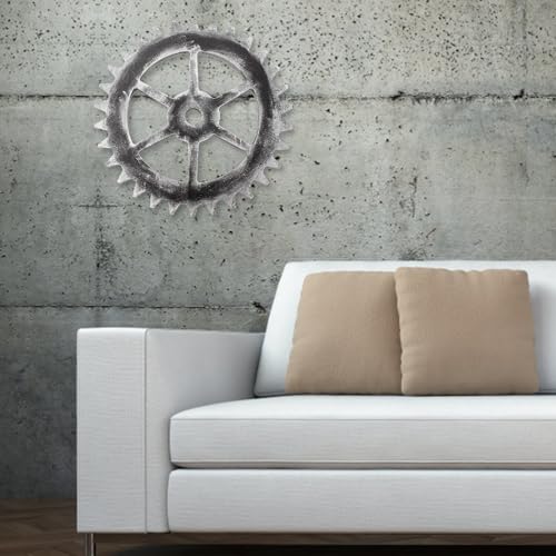CVUTOVO Décoration Murale Industrielle en Bois Forme Engrenage Noir 1 Pièce Accessoire Déco Suspendu pour Salon Bureau Café Style Rétro Vintage 29b