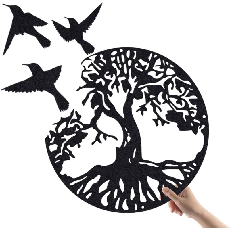 Ahlsen - Art Mural en Métal Arbre De Vie avec Oiseaux Déco Noir - 30cm/11.8inch Décoration Murale Arbre De Vie Deco Metal Murale Moderne Signe De