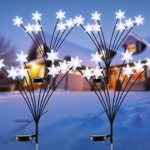 Ninonly Lampe Solaire Exterieur Jardin, 4 Pièces 80 LED Lumière de Flocons de Neige, 8 Modes Décoration Noël Étanche, Lampes Solaire Deco pour Noël Patio Cour Porche