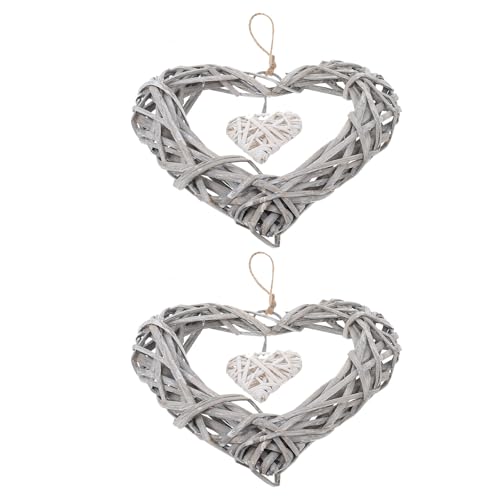VICASKY Lot de 2 Pendentifs en Osier Tissé de Cœur Décoration Suspendue pour Maison et Fête Décoration Murale Romantique Accessoires Déco en Osier Naturel Artisanales