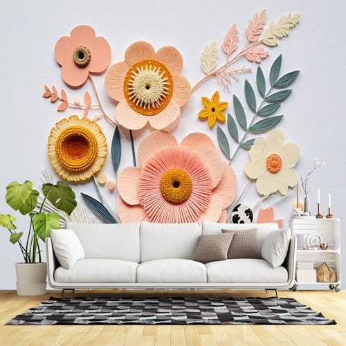 Papier peint de taille personnalisée, fleurs en papier fantaisie, arrangement floral botanique style art déco, tissu mural auto-adhésif (pas de PVC) grand papier peint amovible pour salon