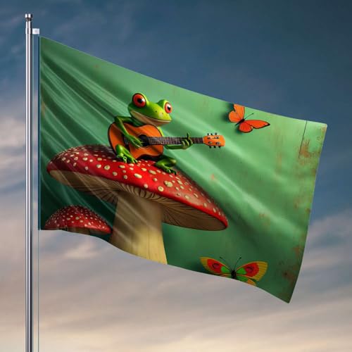 Home Bar Decor Une grenouille joue une guitare sur un drapeau champignon pour dortoir universitaire pour gars drapeau de jardin de printemps (152 x 244 cm)
