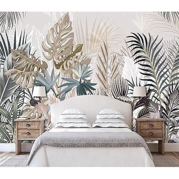 Papier Peint Panoramique Feuilles Tropicales Colorées Papier Peint Soie 3D Tapisserie Poster Decor Murale Chambre Salon 350x250cm