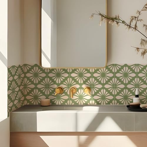 Stickers Muraux Cuisine 20x20 cm Géométrique Vert Élégant Stickers Salle de Bain Imperméable Dalle pvc Adhesive Murale Credence Adhesive pour Cuisine Décoration Carrelage Adhesif Mural (10 Pièces)