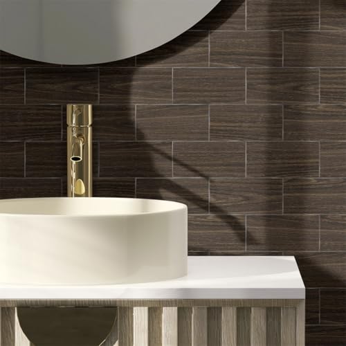 Stickers Muraux Cuisine Bois Brun Foncé Credence Adhesive pour Cuisine Imperméable Stickers Carrelage Decoration Carrelage Adhesif Mural Salle de Bain Stickers Cuisine 48 Pièces/10x20cm