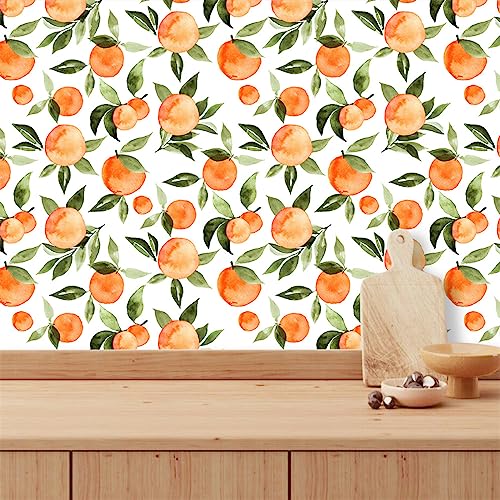 Papier Peint Fruits Verts Oranges Papier Peint Adhesif Mural Imperméable Papier Adhesif pour Meuble Chambre Salon Cuisine Decoration Vinyle Papier Autocollant pour Meuble 2P (40x250cm)
