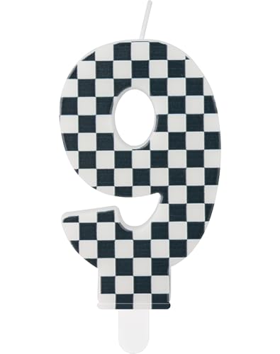 Bougies d'anniversaire de voitures de course,9e anniversaire décoration pour garçon,Noir blanc numéro 9 bougies pour gâteau,Décor à thème de voitures de course pour filles garçons fête d'anniversaire