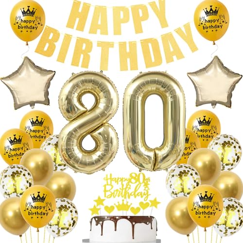 Or 80 ans Anniversaire Femme Ballon,Ballon 80 ans anniversaire or,80 ans anniversaire decoration fête garçon,Or 80 ans fête deco Femme,Ballons 80 ans or Femme,Decoration anniversaire 80 garçon or