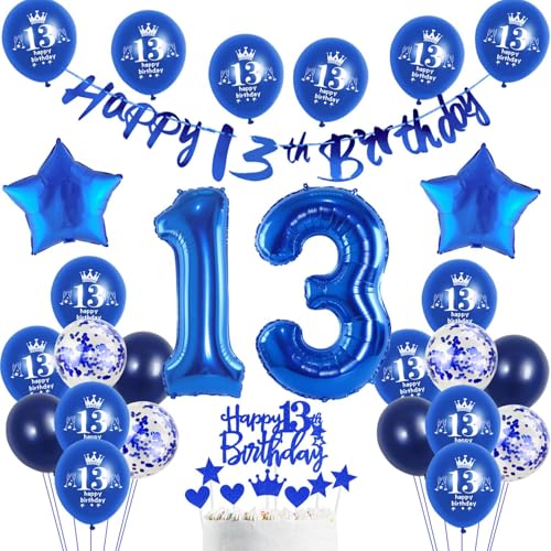 13 anniversaire décoration garcon, bleu bannière 13 anniversaire guirlande décoration 13 anniversaire garcon ballons 13 anniversaire décoration gâteau 13 anniversaire 13 ans garcon ballons